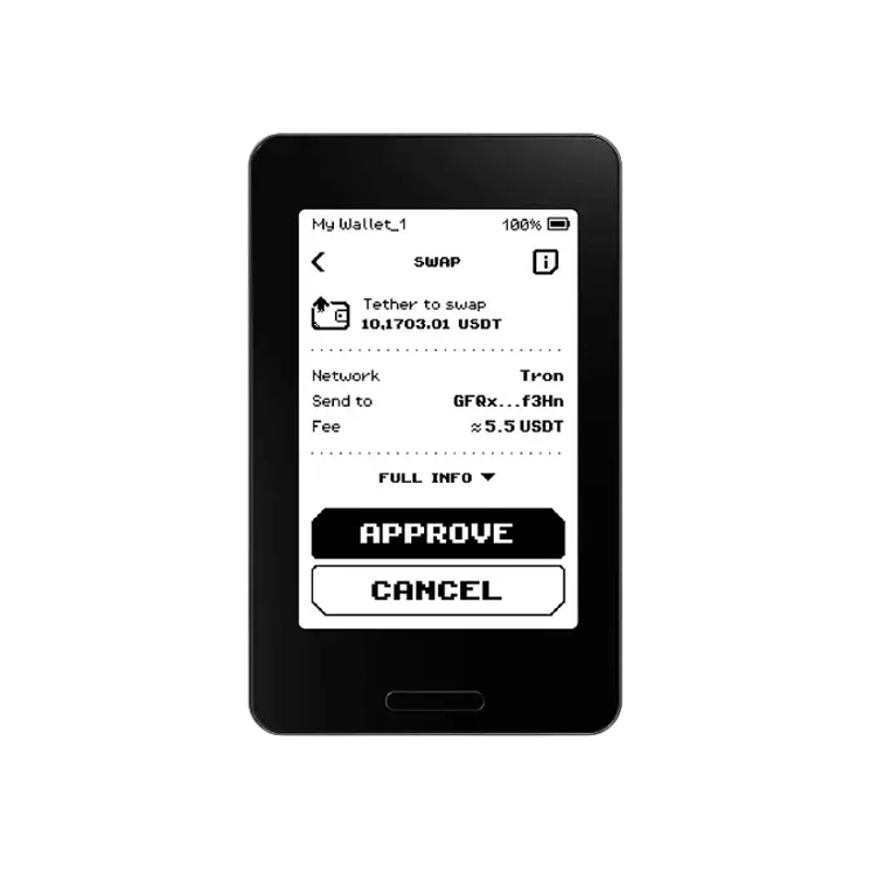 1.8′ monochrome , 128*64 resolution LCD screen, showing more transaction details